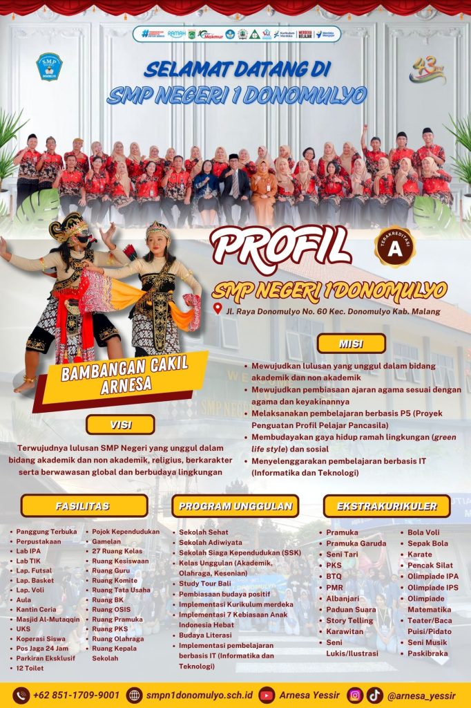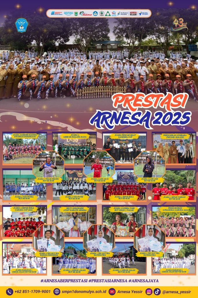 Dalam rangka memperingati HUT ke-43 SMP Negeri 1 Donomulyo (ARNESA), kami mengundang pramuka penggalang se-Kecamatan Donomulyo dan sekitarnya untuk berpartisipasi dalam Lomba Galang Pramuka 2025.
